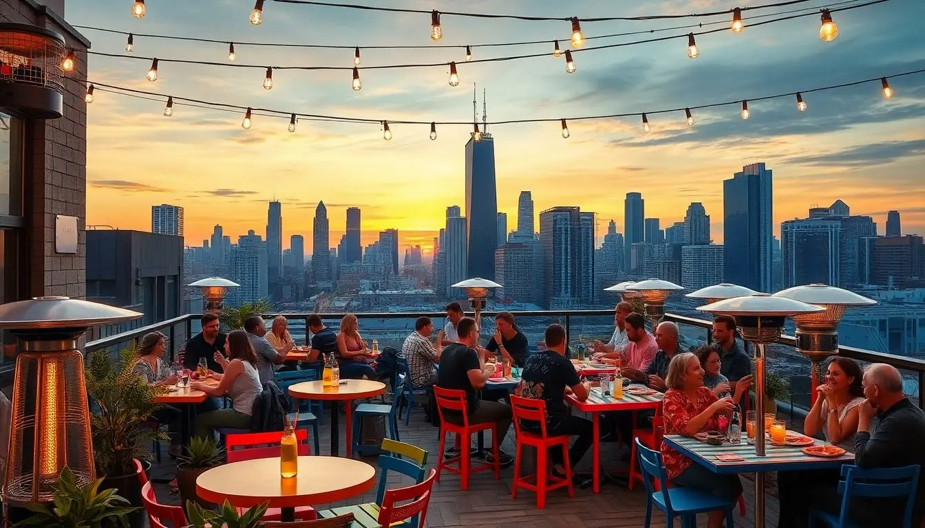 Rooftop patios provide stunning skyline views alongside refreshing drinks. Many venues in popular neighborhoods like River North take advantage of elevation to create inviting atmospheres. Visitors relax under the stars while enjoying crafted cocktails and seasonal fare. Often, these rooftops feature heaters for cooler evenings, ensuring comfort throughout the night. Exciting, lively environments characterize rooftop dining, attracting both locals and tourists alike.